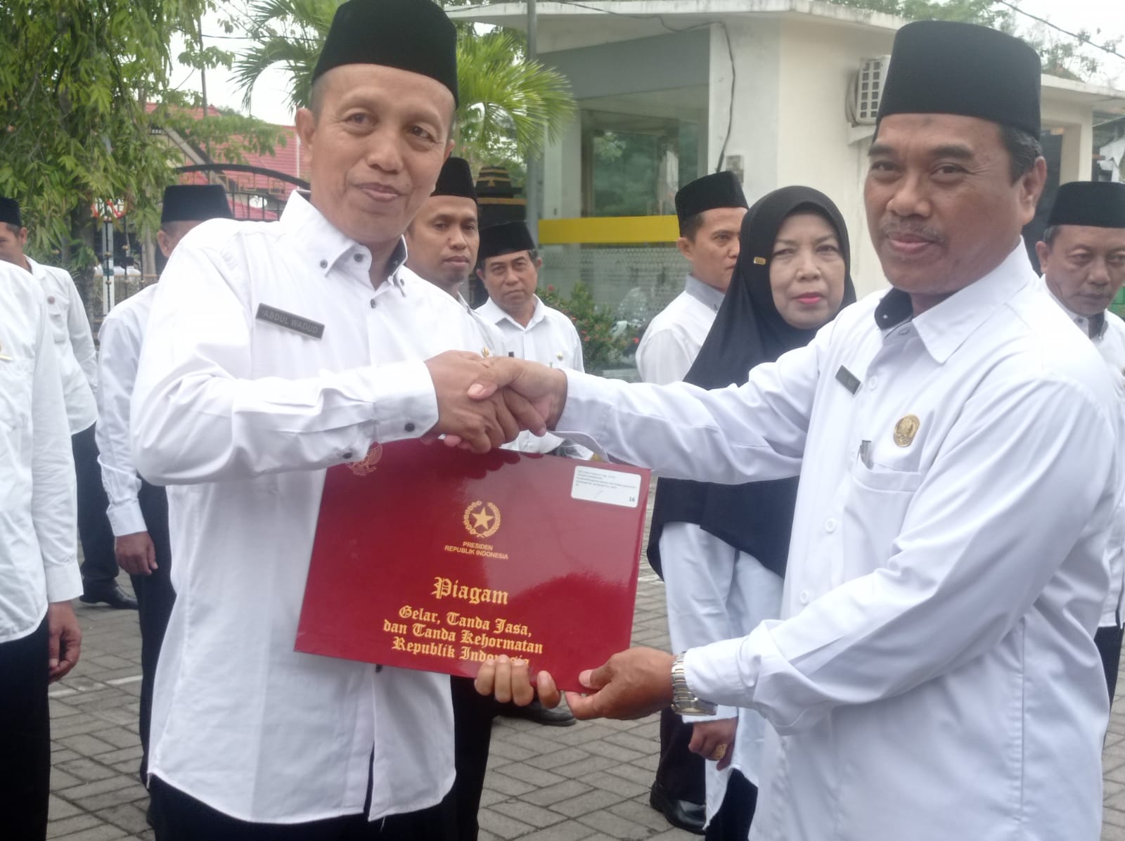 Penyematan penghargaan pengabdian itu dilakukan langsung oleh Kepala Kantor Kementerian Agama Kabupaten Sampang saat Apel Rutin di di Halaman Kantor Kemenag Sampang , Senin (15/1) pagi.