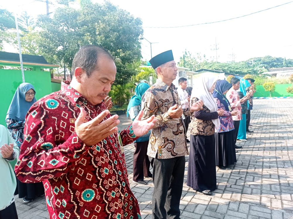 “ Mari kita berdoa bersama, semoga para korban yang meninggal dunia diampuni dosa-dosanya, diterima Amal baiknya serta keluraga yang ditinggalkan diveri ketabahan oleh Allah SWT “ Ajak Kepala Kemenag Sampang, Moh. Ersyad, saat menjadi Pembina Apel dan memimpin doa versama.