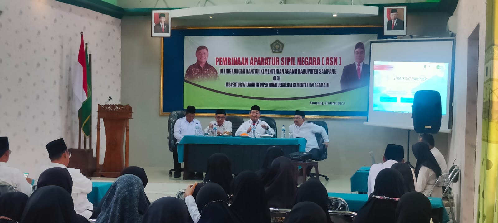 kemenagsampang.com -Kementerian Agama Kabupaten Sampang melaksanakan kegiatan Pembinaan Aparatur Sipil Negara (ASN) dari Inspektorat Jenderal Kementerian Agama di Aula Kantor Kemenag Sampang, Selasa (07/03/2023).
