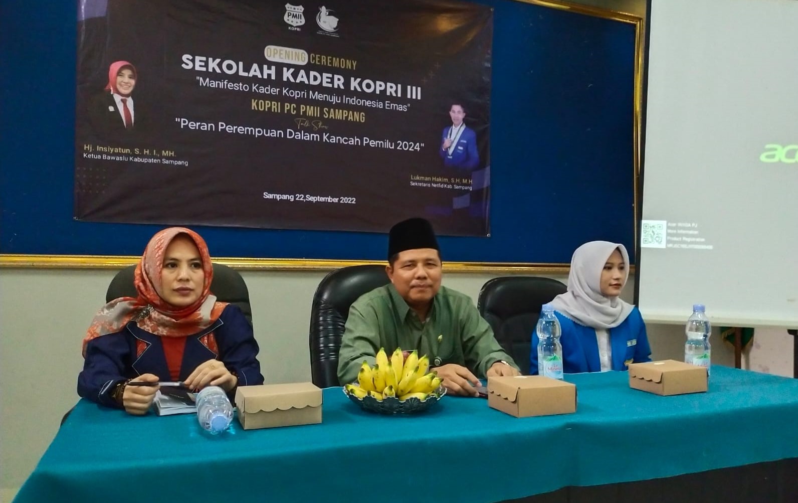 “ PMII diharapkan perannya dalam berbangsa bernegara, terlebih Kemenag saat ini sedang mengembangkan Moderasi Beragama,” ulang KaKan Kemenag Sampang saat memberikan sambutan di acara Sekolah Kader Kopri III Kopri PC. PMII Sampang di Aula Kemenag Sampang, Kamis (22/09/2022).