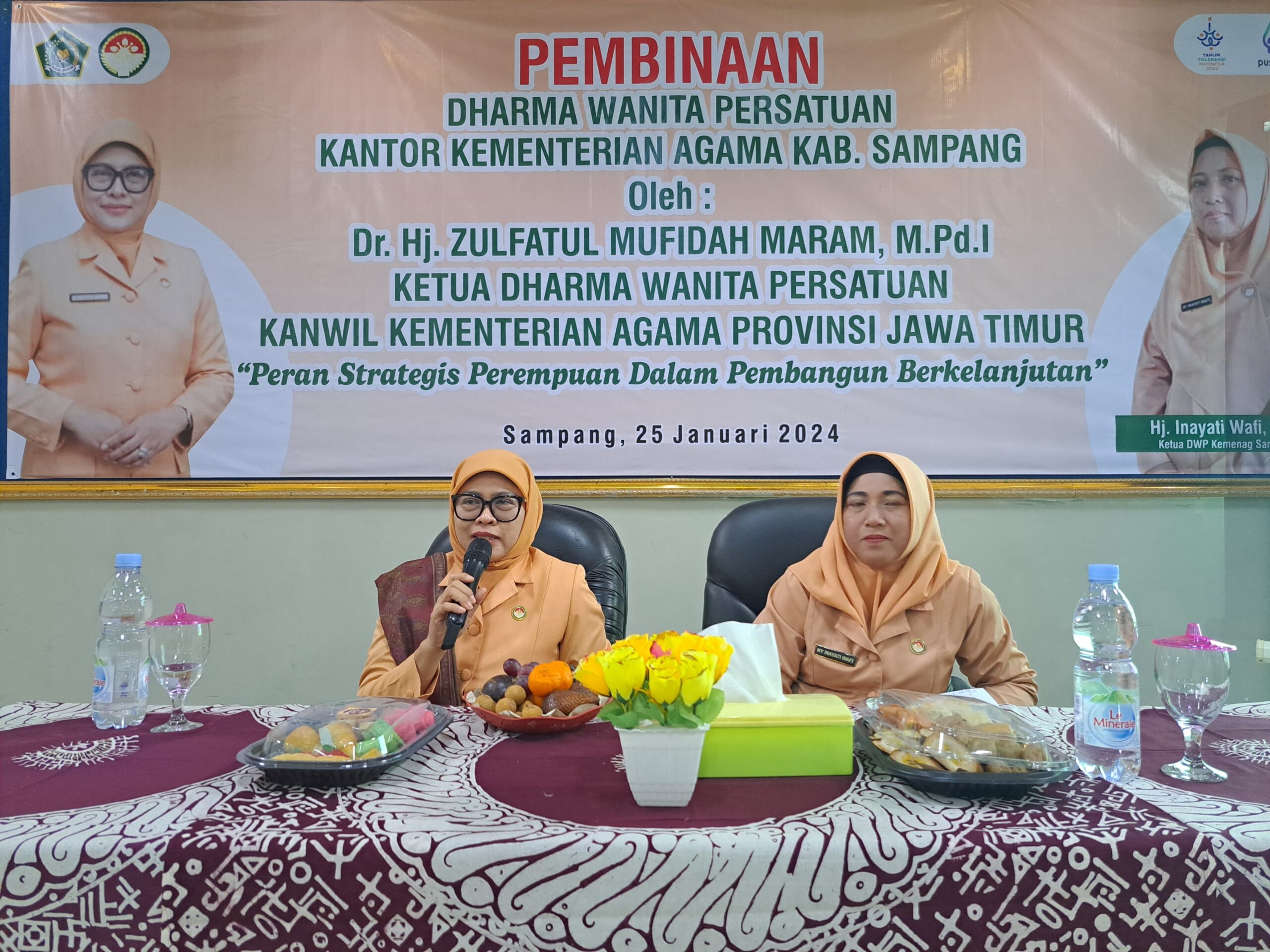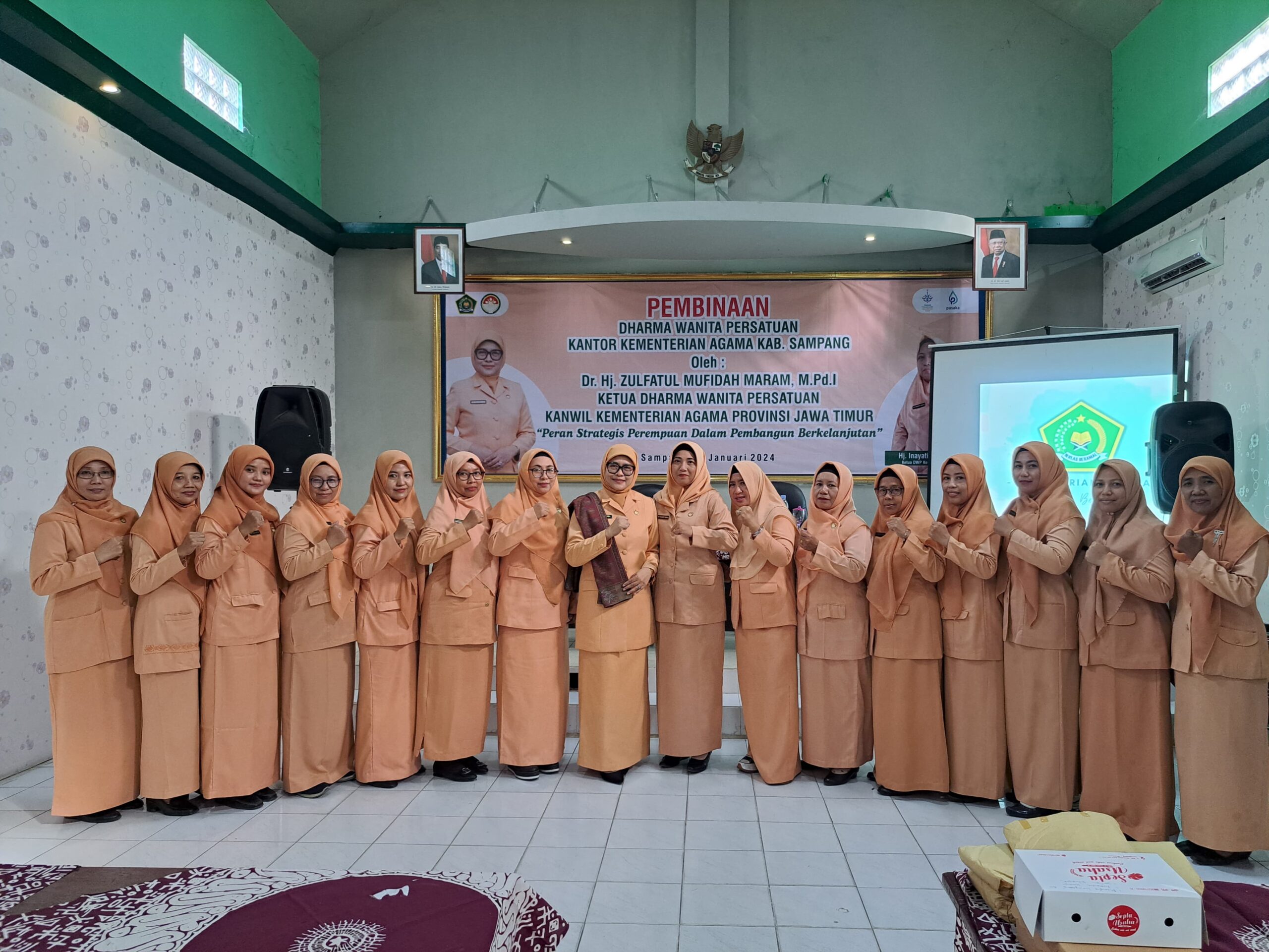 kemenagsampang.com -Ketua Dharma Wanita Persatuan (DWP) Kanwil Kementerian Agama Prov. Jatim Zulfatul Mufidah Maram melakukan pembinaan kepada Pengurus DWP di lingkungan Kankemenag Kabupaten Sampang.