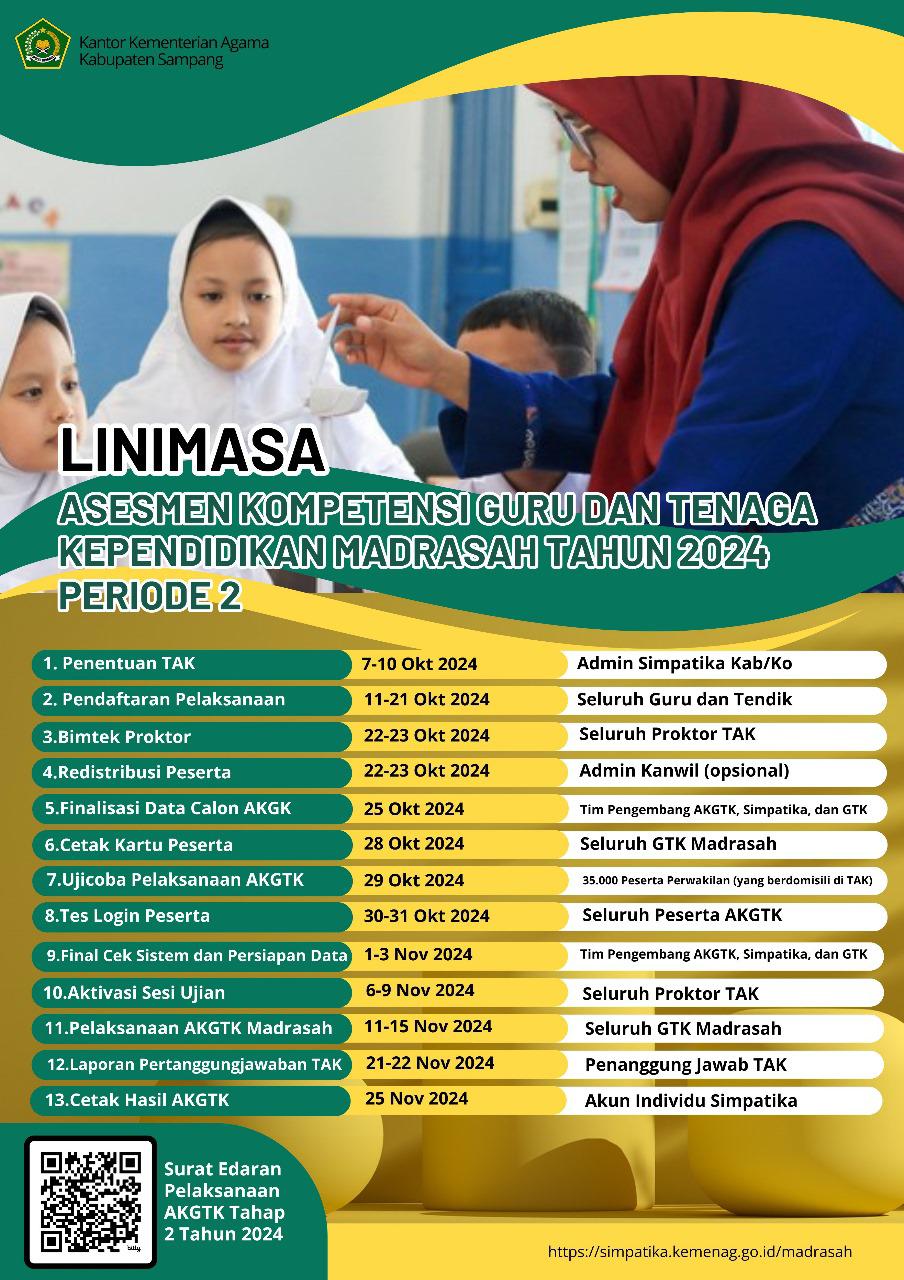 "Kami mengimbau seluruh satuan pendidikan di bawah naungan Kemenag untuk segera menyiapkan pelaksanaan AKGTK ini dengan baik. Tujuannya jelas, agar kompetensi guru dan tenaga kependidikan terus terasah dan mampu mengikuti perkembangan zaman dalam memberikan pendidikan yang bermutu kepada peserta didik," tutur Kepala Kemenag Sampang.