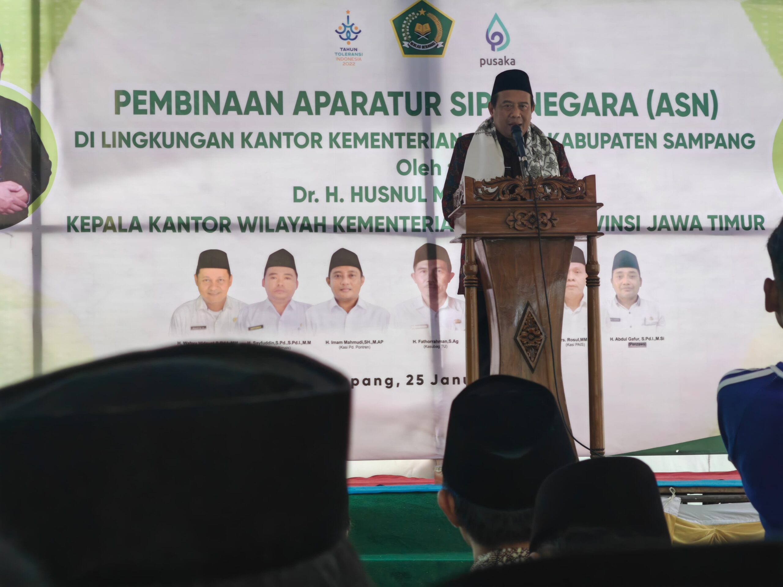 kemenagsampang.com - Kepala Kantor Wilayah (Kakanwil) Kementerian Agama Provinsi Jawa Timur, Husnul Marom, melakukan kunjungan kerja dan pembinaan bagi Aparatur Sipil Negara (ASN) di lingkungan Kankemenag Kabupaten Sampang